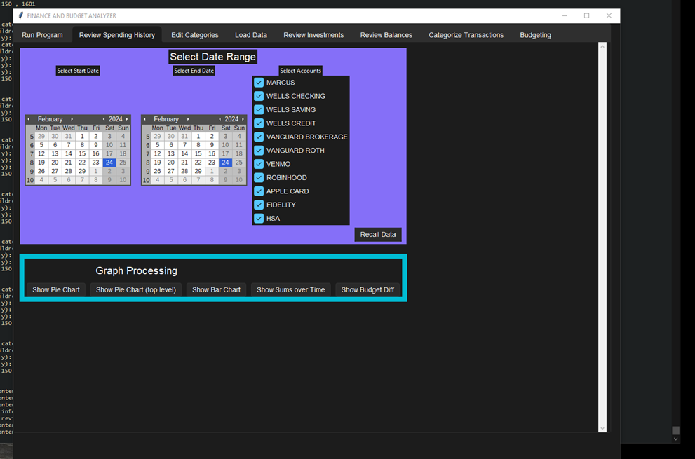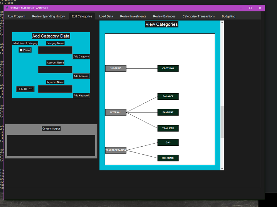 Early on I chose to use a GUI. I used the Tkinter framework. I got basic functionality working for many of the sub menus, although to a much lesser extent than the program state was today.\