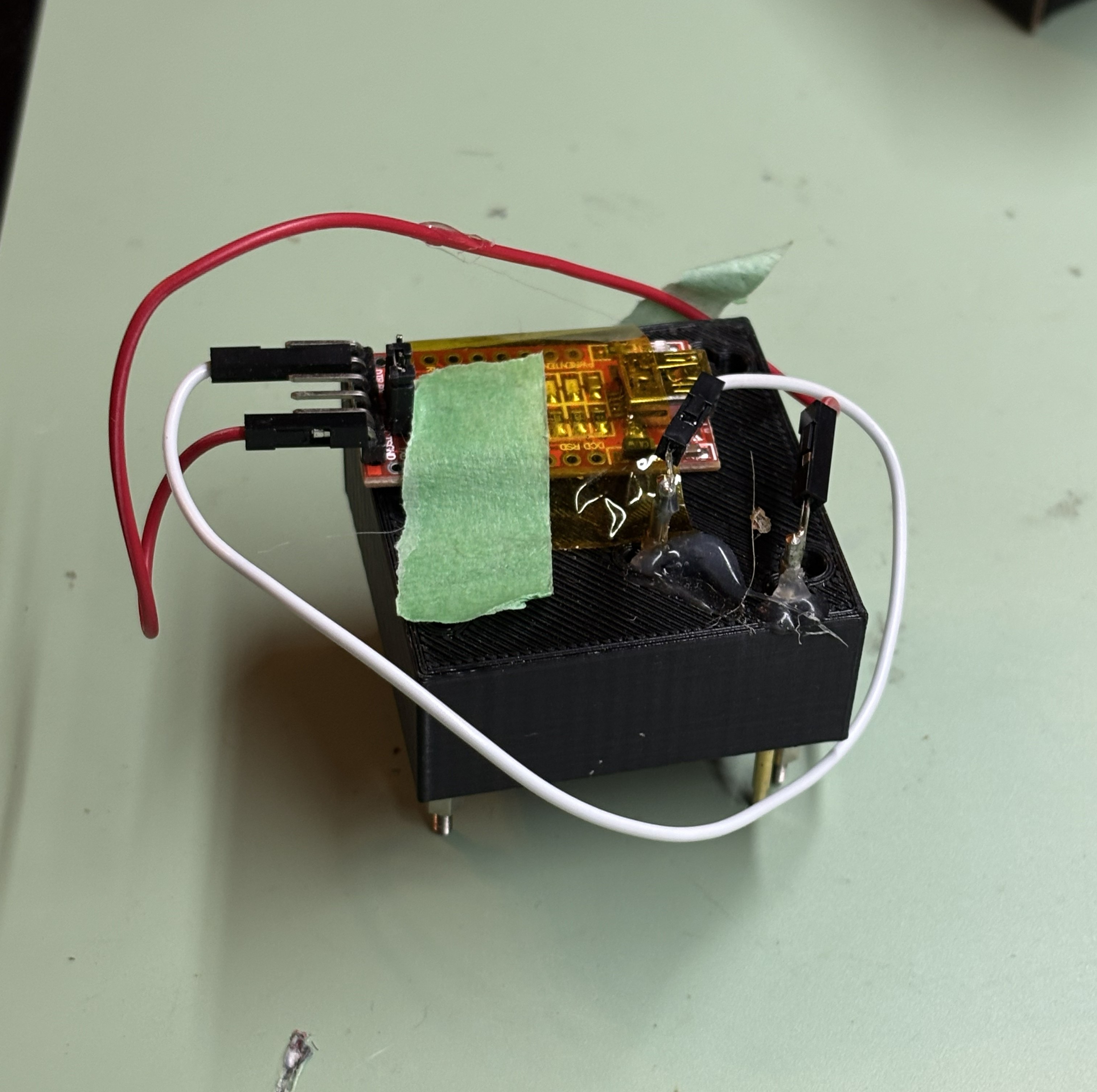 This worked well enough, but I had some alignment issues. The probe needles were not touching down to the PCB in the correct spot. I tried to solve these issues with hot-glue, but that proved not to be an elegant solution. Hot glue often has a habit of seeming like a solution, but it is almost always replaced by something else!