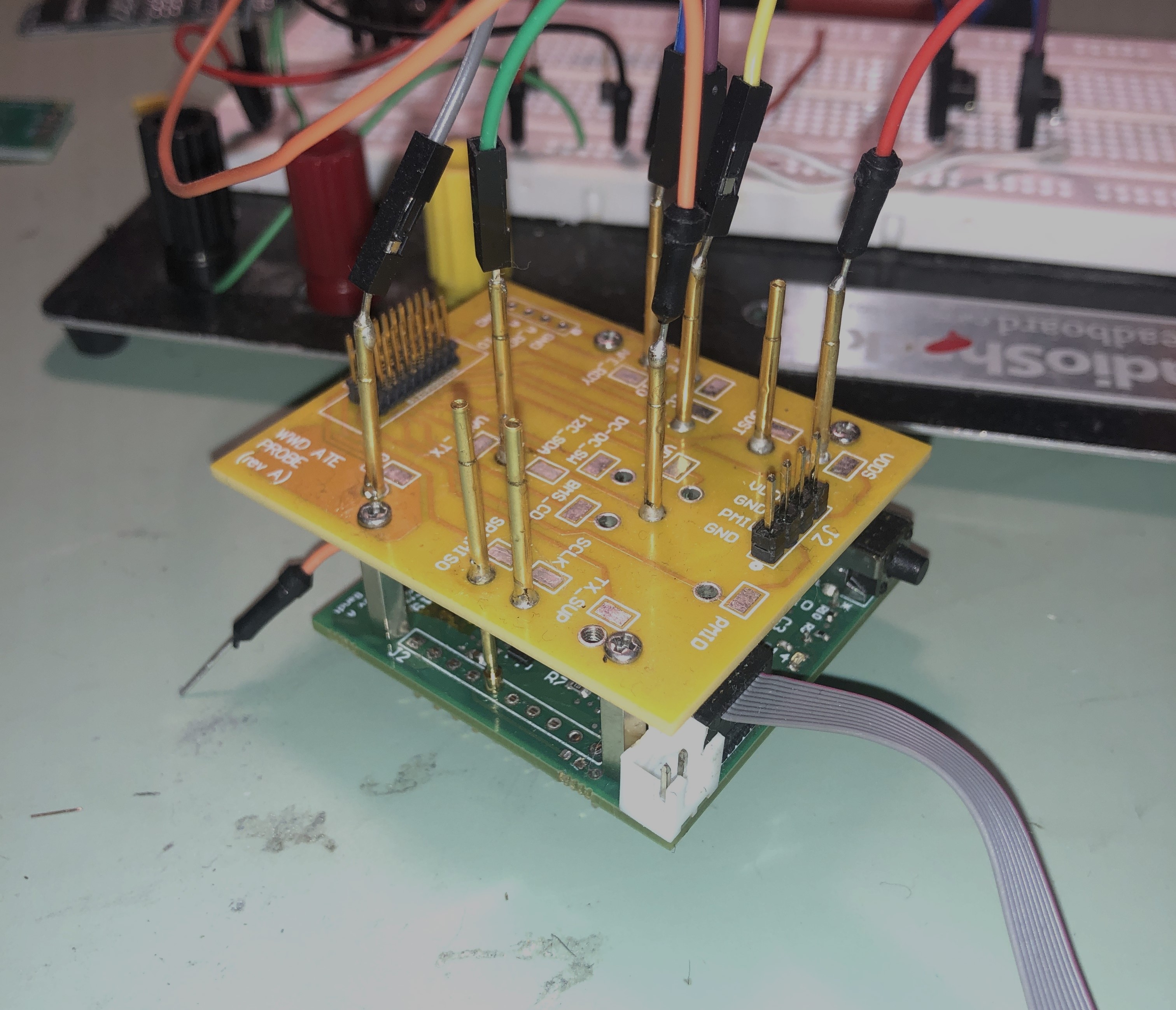 I ordered the boards from PCBWay, for about 35 dollars total. A quick soldering session later and I had a working probe tester hooked up to my board through standoffs.