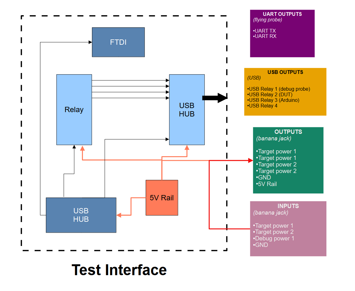 On the hardware side, what I really needed is basically an "interface board". No complicated components, pretty much just need a way to connect the signals and power rails on the DUT to an easy to access test board. From my semiconductor testing days, that was the main purpose of our hardware - providing an interface between the tester and the DUT.