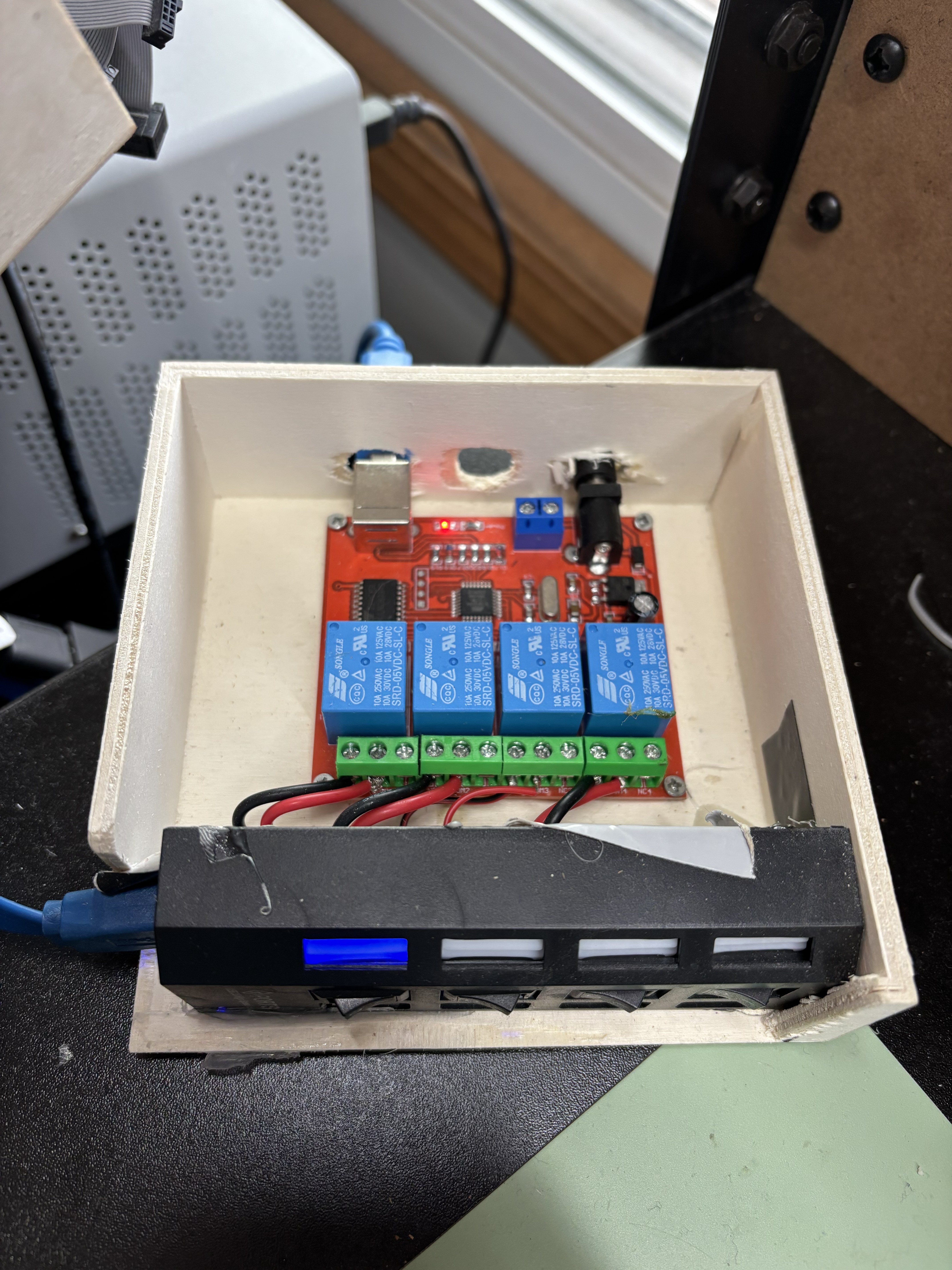 - Combined this with a USB hub to hack together a software controllable USB relay hub.